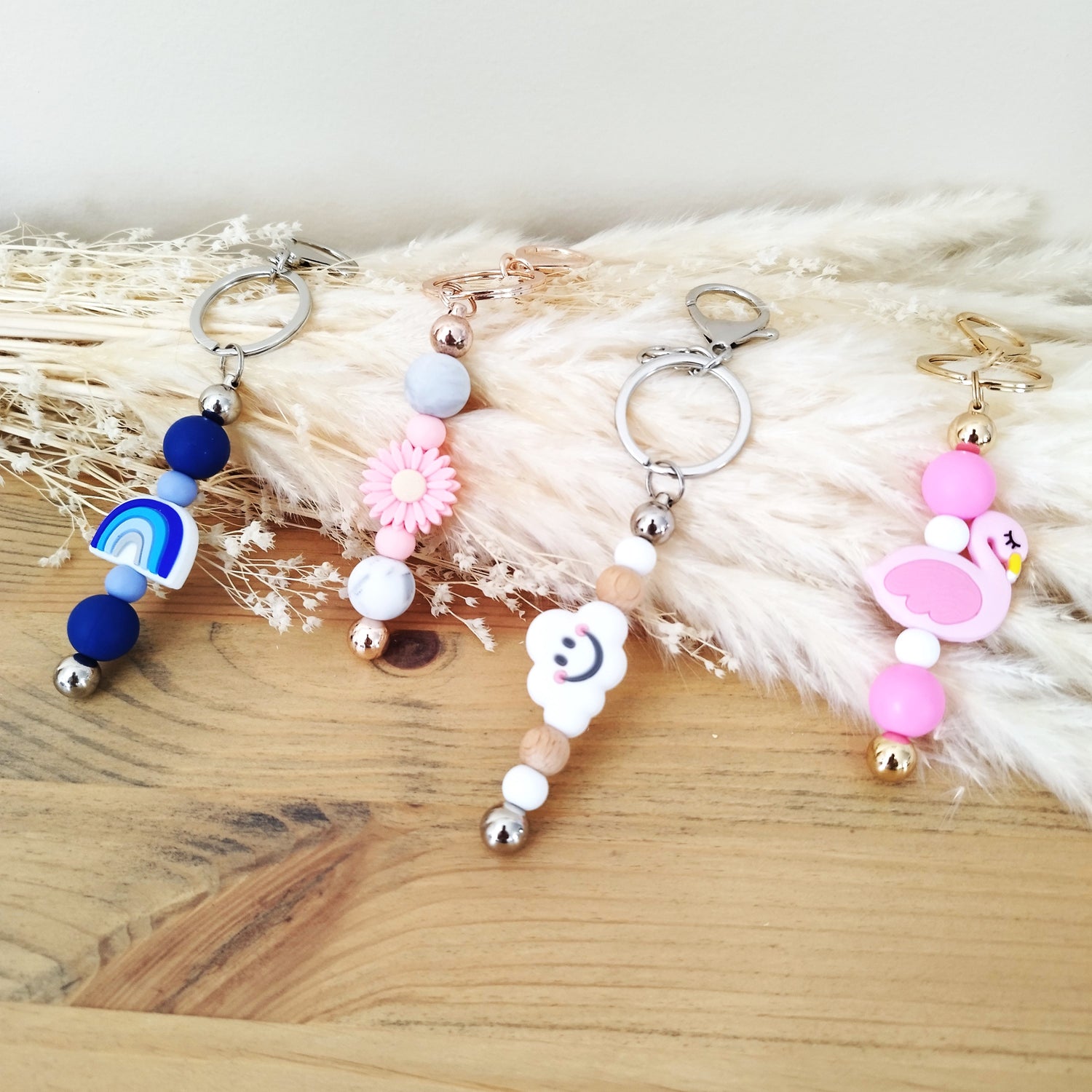 Soyez assorti à votre enfant avec ce porte clé personnalisable fait de perles en silicones. C'est vous qui choisissez !