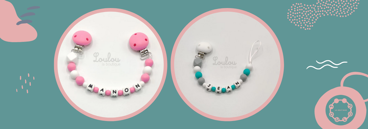 Nous vous proposons une sélection d’attaches sucettes personnalisées avec le prénom entièrement faites main.